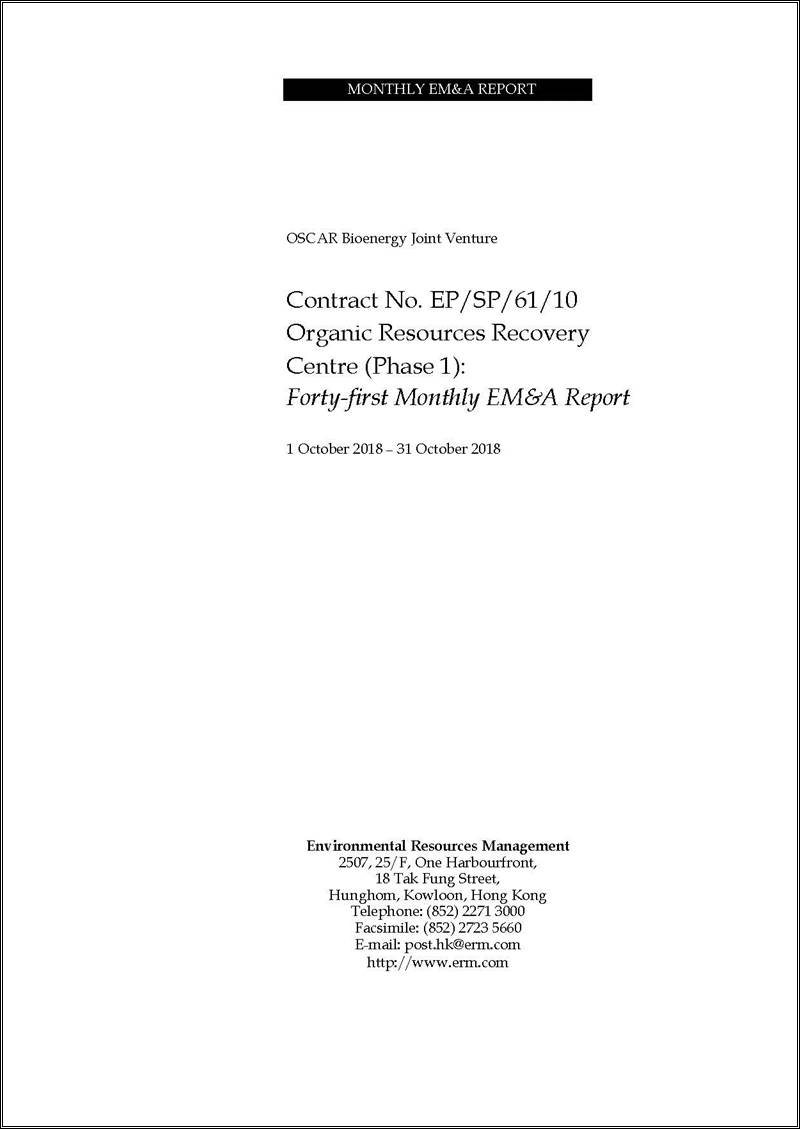 The construction works of No. EP/SP/61/10 Organic Resources Recovery Centre Phase 1 (the Project) commenced on 21 May 2015. This is the 41st monthly Environmental Monitoring and Audit (EM&A) report presenting the EM&A works carried out during the period from 1 to 31 October 2018 in accordance with the EM&A Manual.