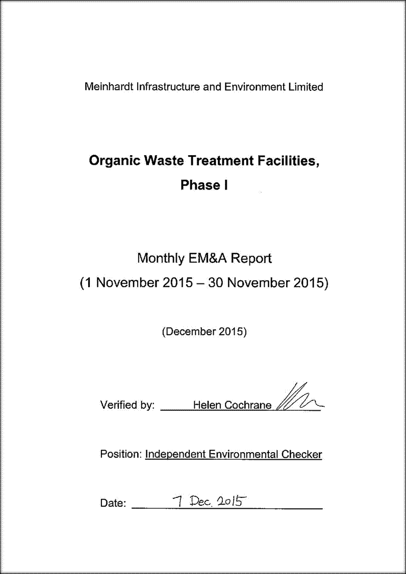 monthly Environmental Monitoring and Audit (EM&A) report presenting the