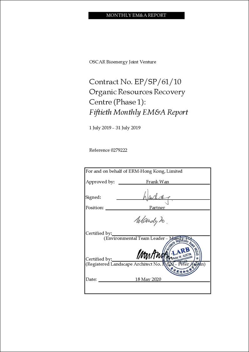 The construction works of No. EP/SP/61/10 Organic Resources Recovery Centre Phase 1 (the Project) commenced on 21 May 2015. This is the 49th monthly Environmental Monitoring and Audit (EM&A) report presenting the EM&A works carried out during the period from 1 to 31 July 2019 in accordance with the EM&A Manual. Substantial completion of the construction works was confirmed on 3 December 2018. In the meantime, the operation phase EM&A programme had commenced in March 2019.