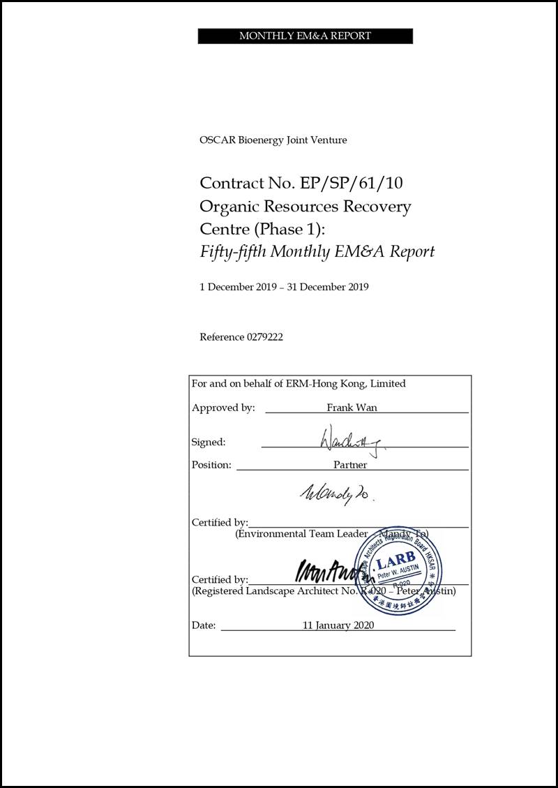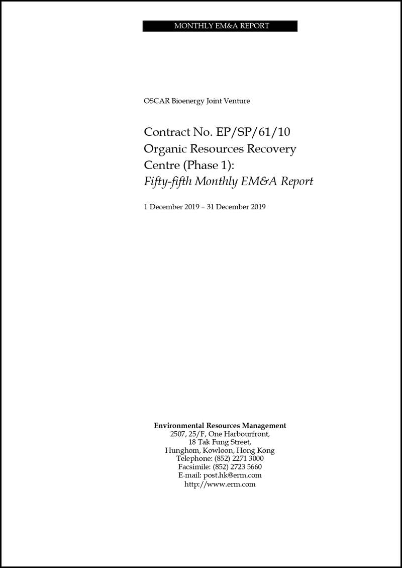 ERM-Hong Kong, Limited (ERM) was appointed by OSCAR Bioenergy Joint Venture (the Contractor) as the Environmental Team (ET) to undertake the construction Environmental Monitoring and Audit (EM&A) programme for the Contract No. EP/SP/61/10 of Organic Waste Treatment Facilities Phase I, which the project name has been updated to Organic Resources Recovery Centre (Phase I) (the Project) since November 2017. ERM was also appointed by the Contractor to undertake the operation EM&A programme starting 1 March 2019.