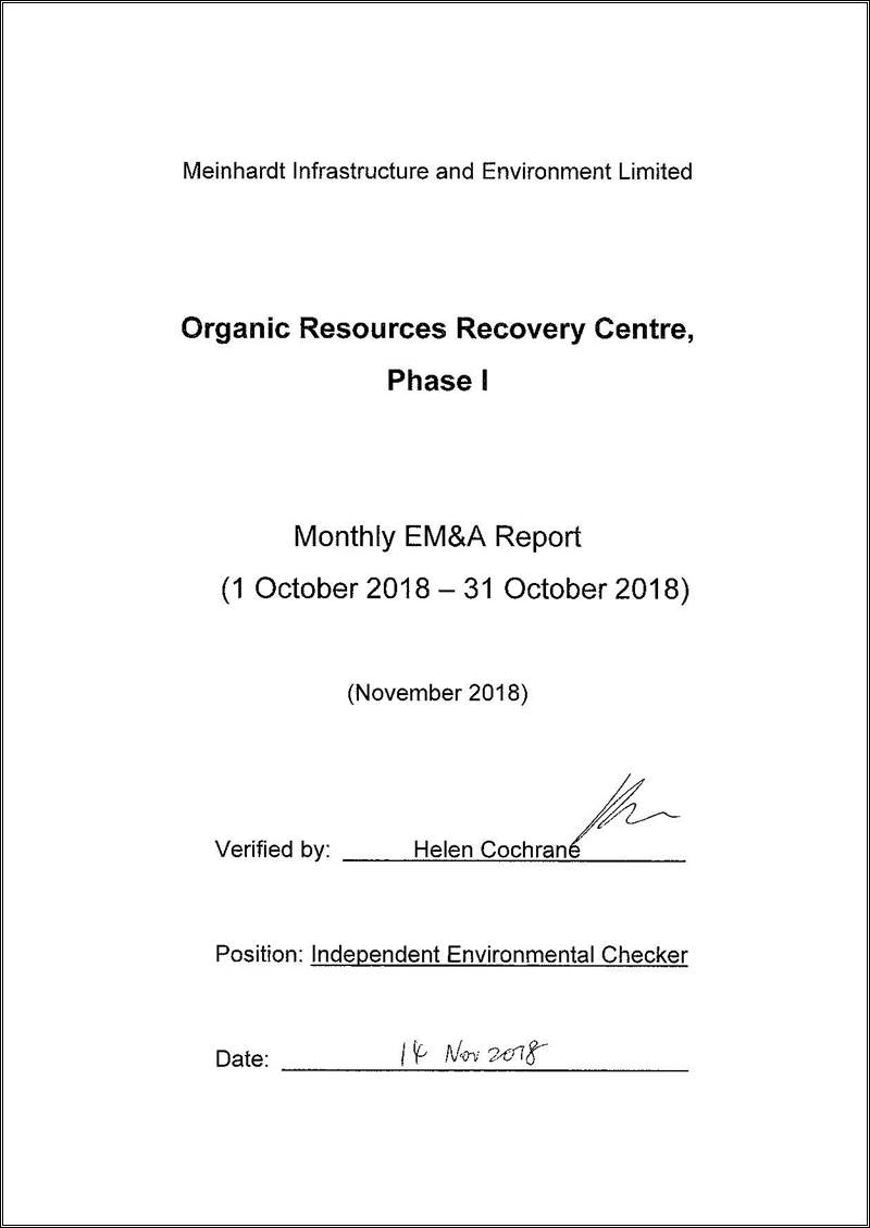 The construction works of No. EP/SP/61/10 Organic Resources Recovery Centre Phase 1 (the Project) commenced on 21 May 2015. This is the 41st monthly Environmental Monitoring and Audit (EM&A) report presenting the EM&A works carried out during the period from 1 to 31 October 2018 in accordance with the EM&A Manual.