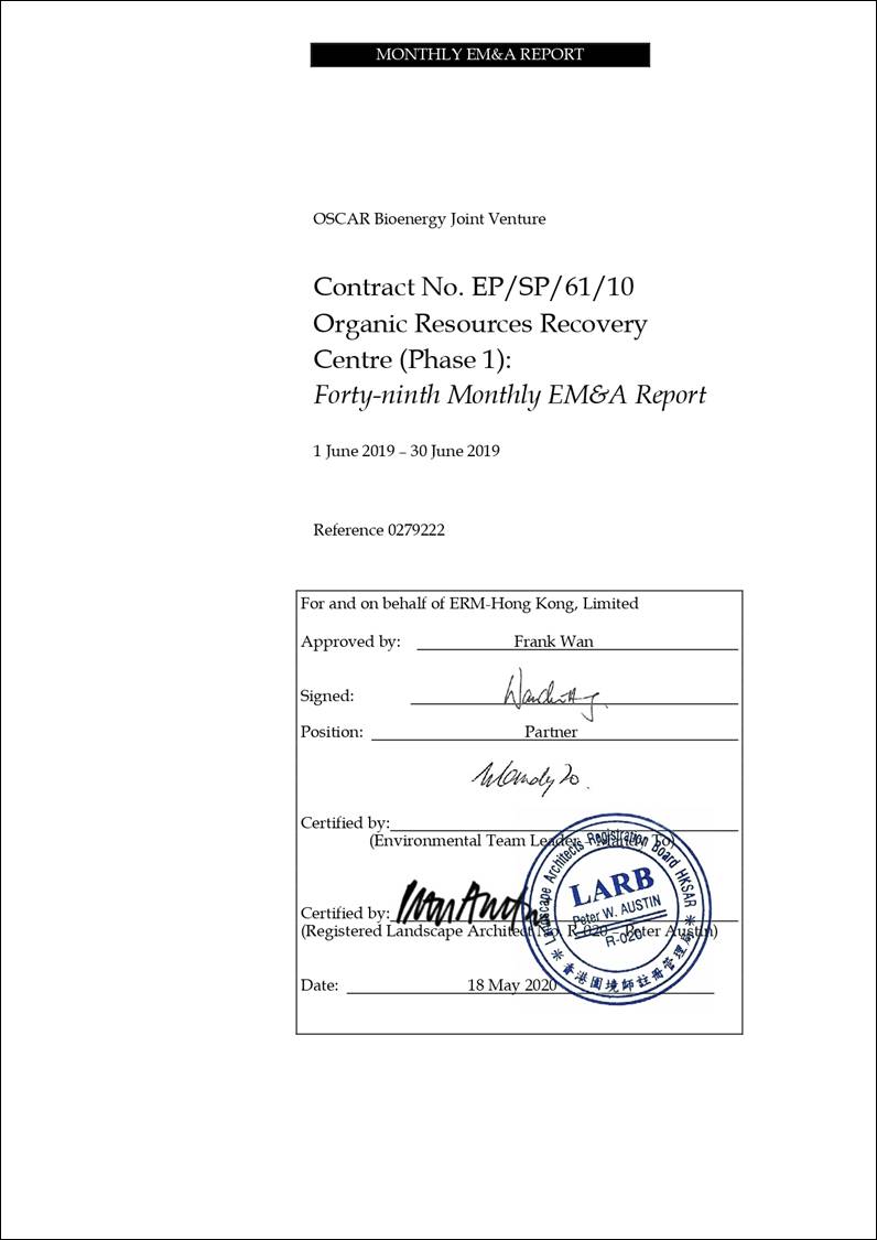 2019, the construction phase EM&A programme and Operation Phase EM&A