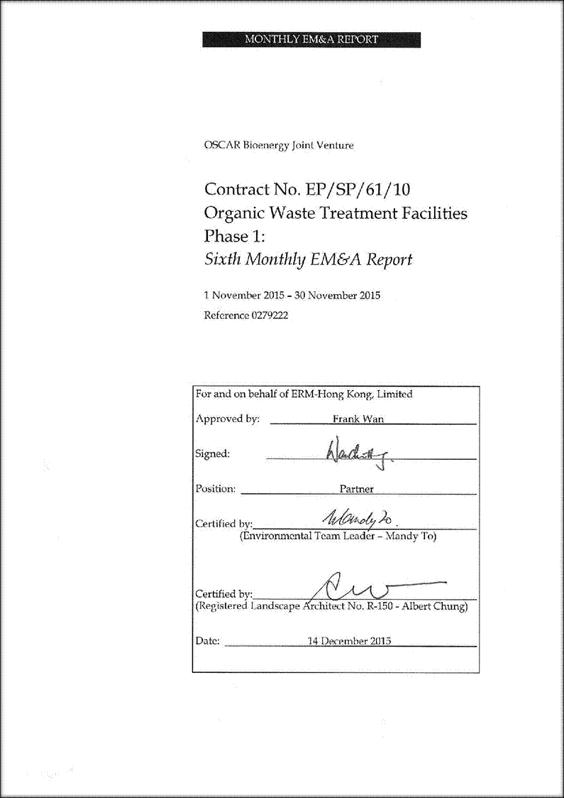 monthly Environmental Monitoring and Audit (EM&A) report presenting the