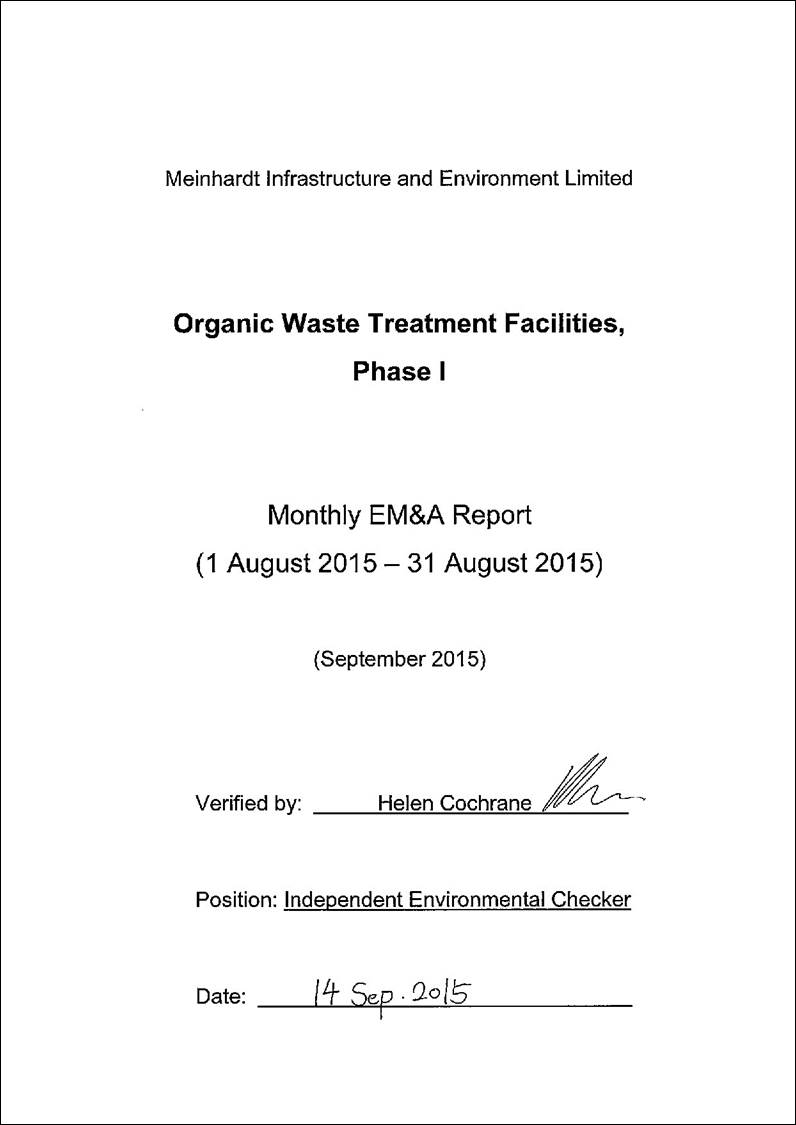 period from 1 August 2015 to 31August 2015 in accordance with the EM&A